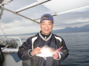 今日はM様親子・Y様の3名様乗船でam7:00出航…風も無く穏やかな釣り日和ですが魚の活性は今一状態、又、餌取りが多く苦戦しましたが皆様本命の真鯛を釣る事が出来ました。外道でへ鯛やカワハギ・ガラカブ・アコウ等も上がり先ず々でした。 釣果は…真鯛50㎝を頭に21枚、へ鯛5枚、カワハギ2枚、アコウ1枚、ガラカブ等々