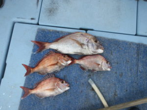 釣果は…真鯛4枚と少なかったですが型は良型です